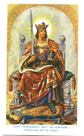 San Fernando III, Rey de Castilla y León (España). Fiesta: 30 de mayo. 1198-1252. Patrón de España junto a Santiago,de las Juventud Española y del Arma de Ingenieros